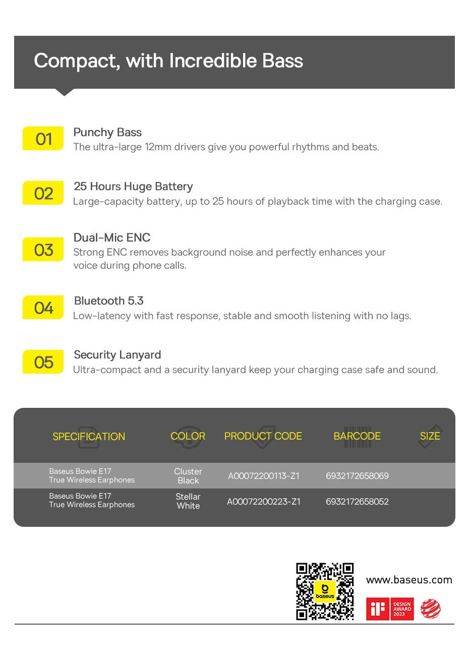 Baseus Bowie E17 True Wireless Bluetooth Earphones