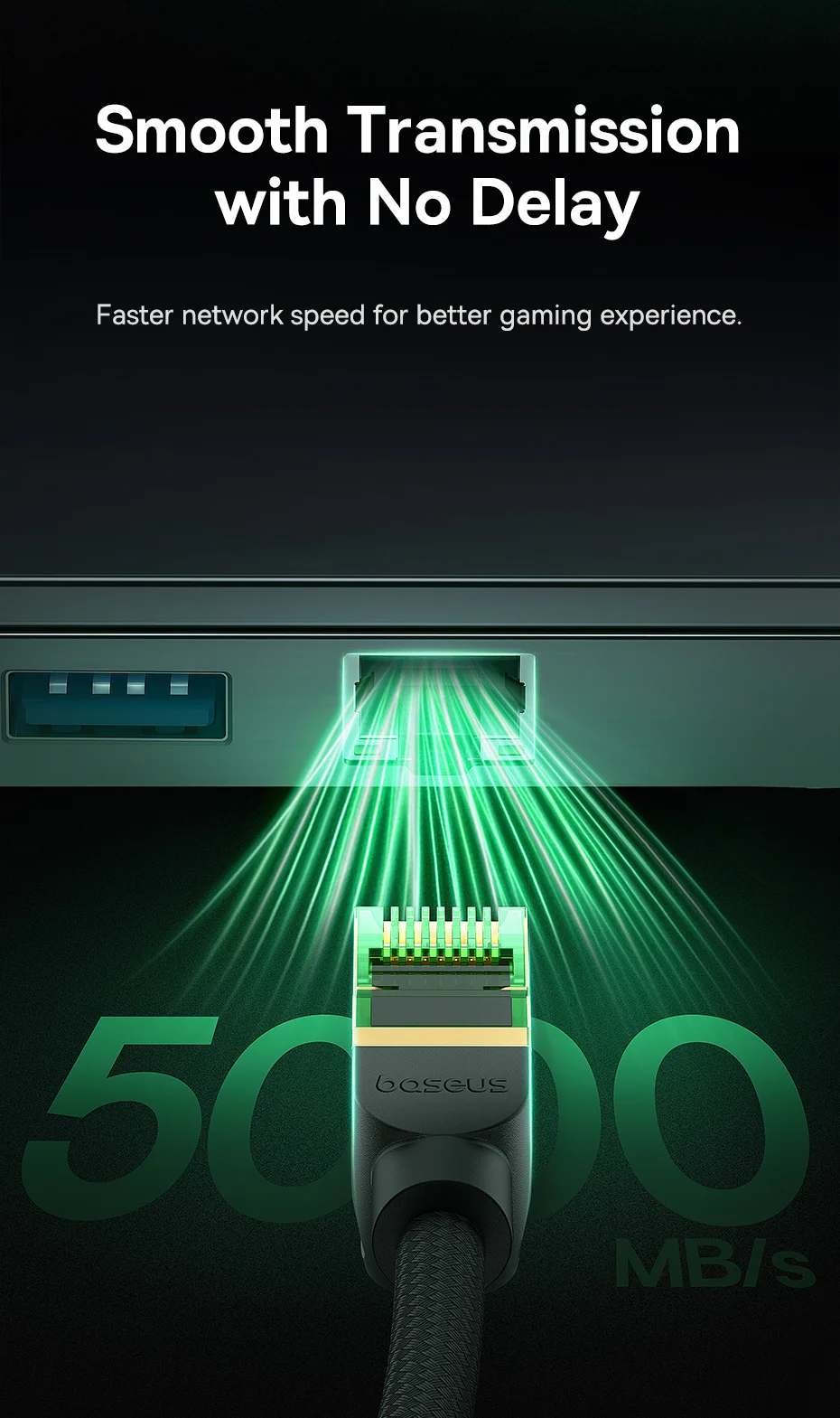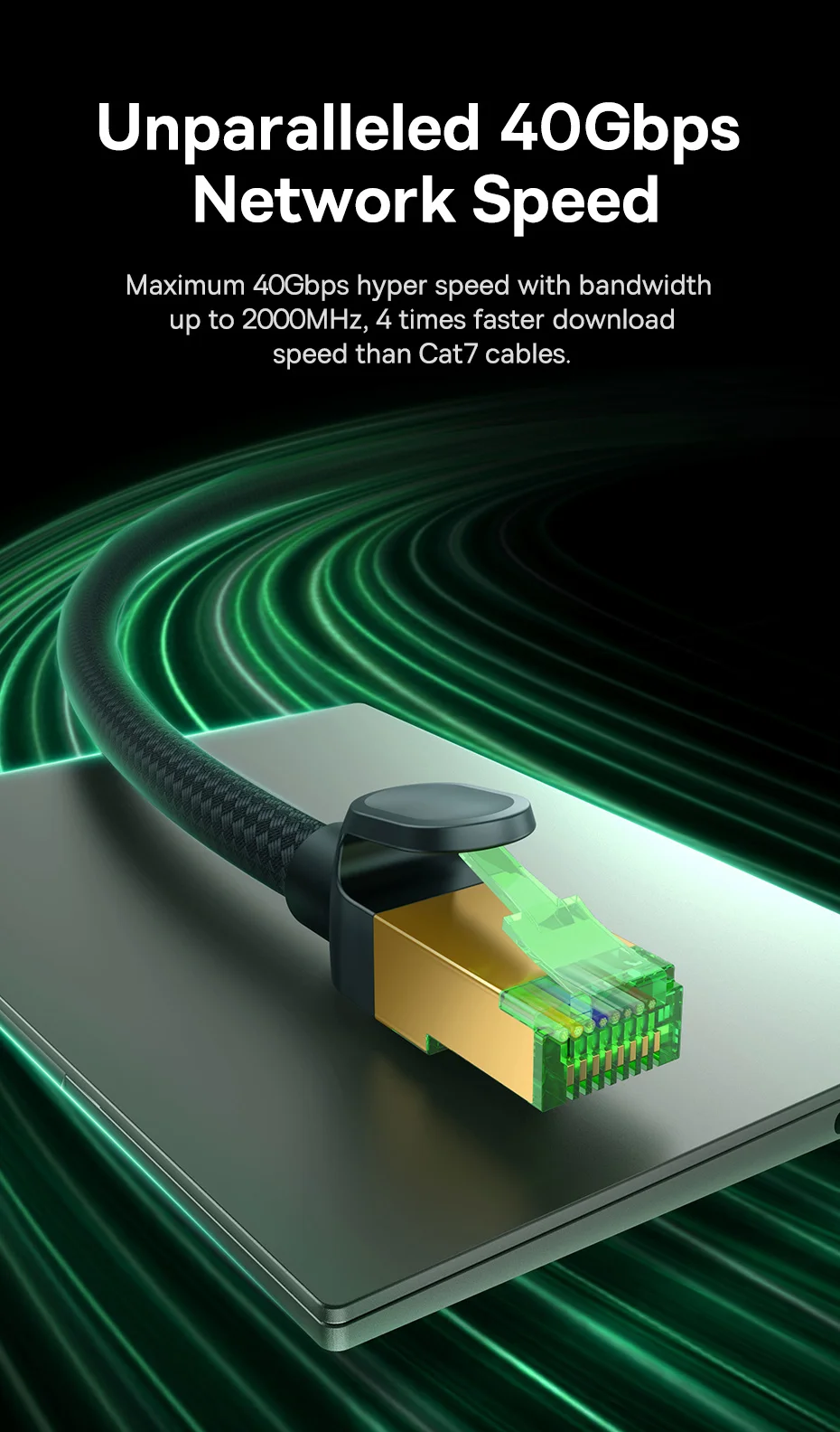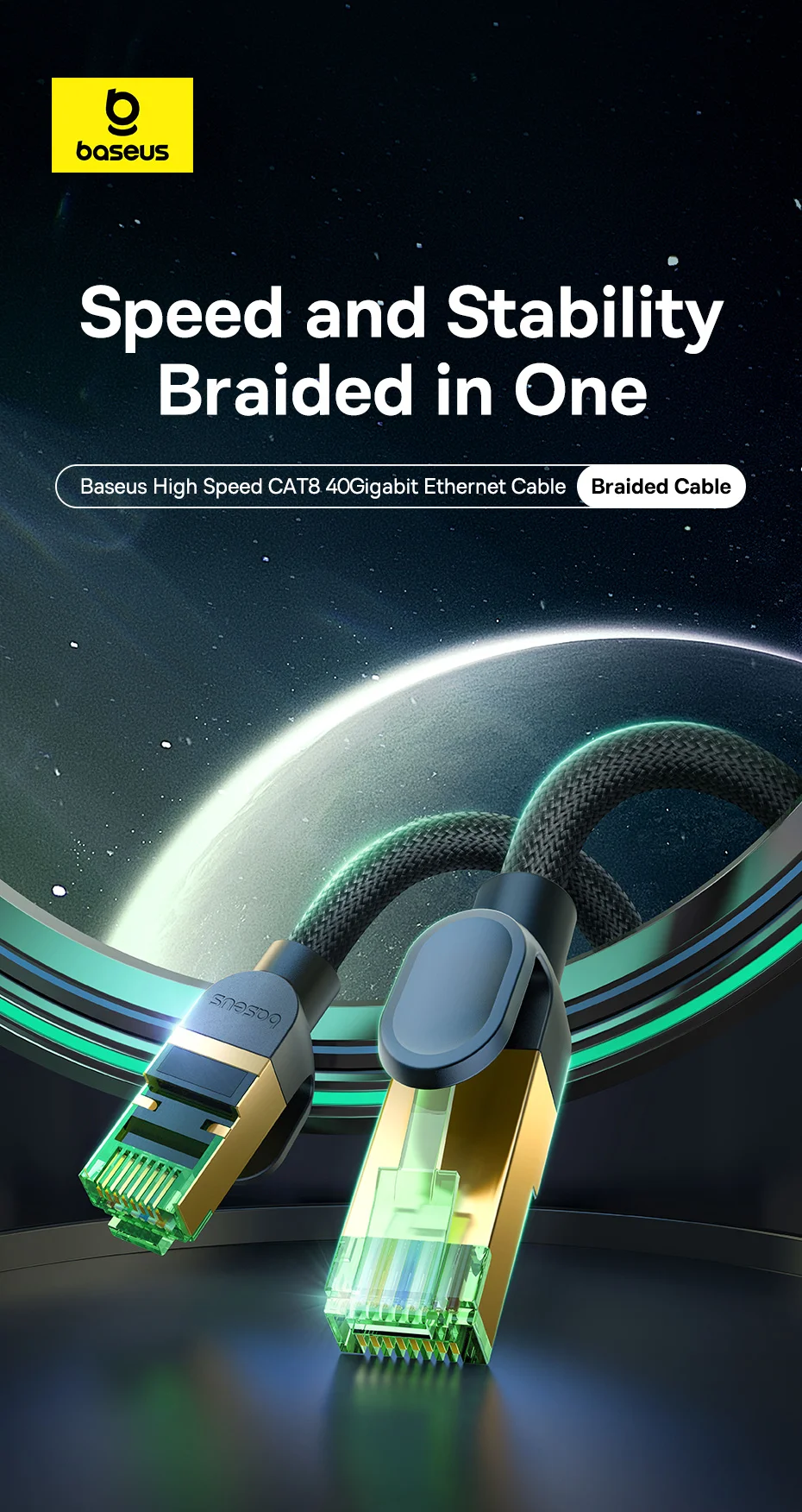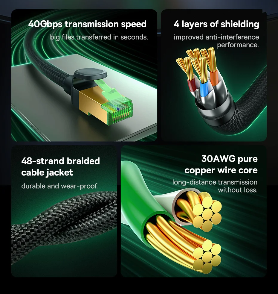 Baseus High Speed CAT8 40Gigabit Ethernet Cable (Braided Cable) Cluster Black