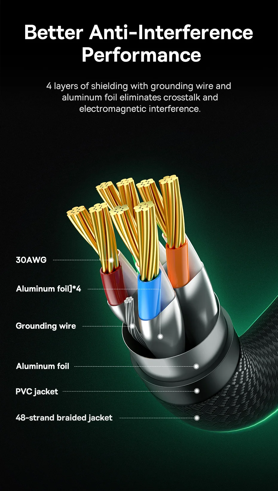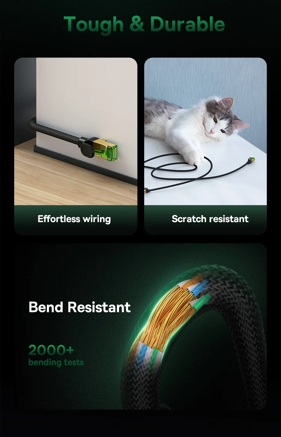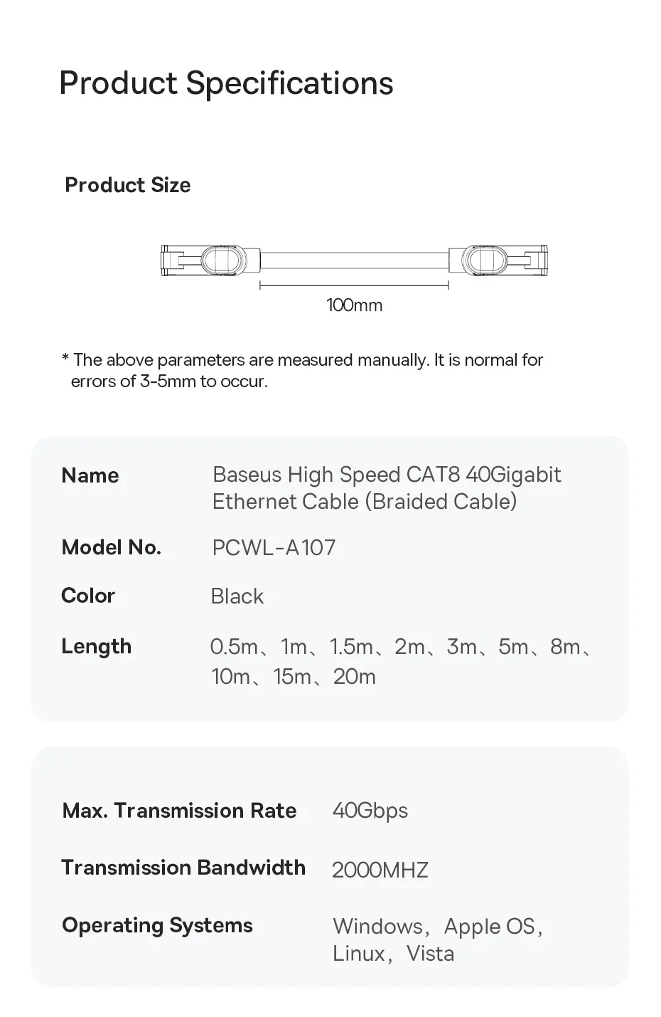 Baseus High Speed CAT8 40Gigabit Ethernet Cable (Braided Cable) Cluster Black