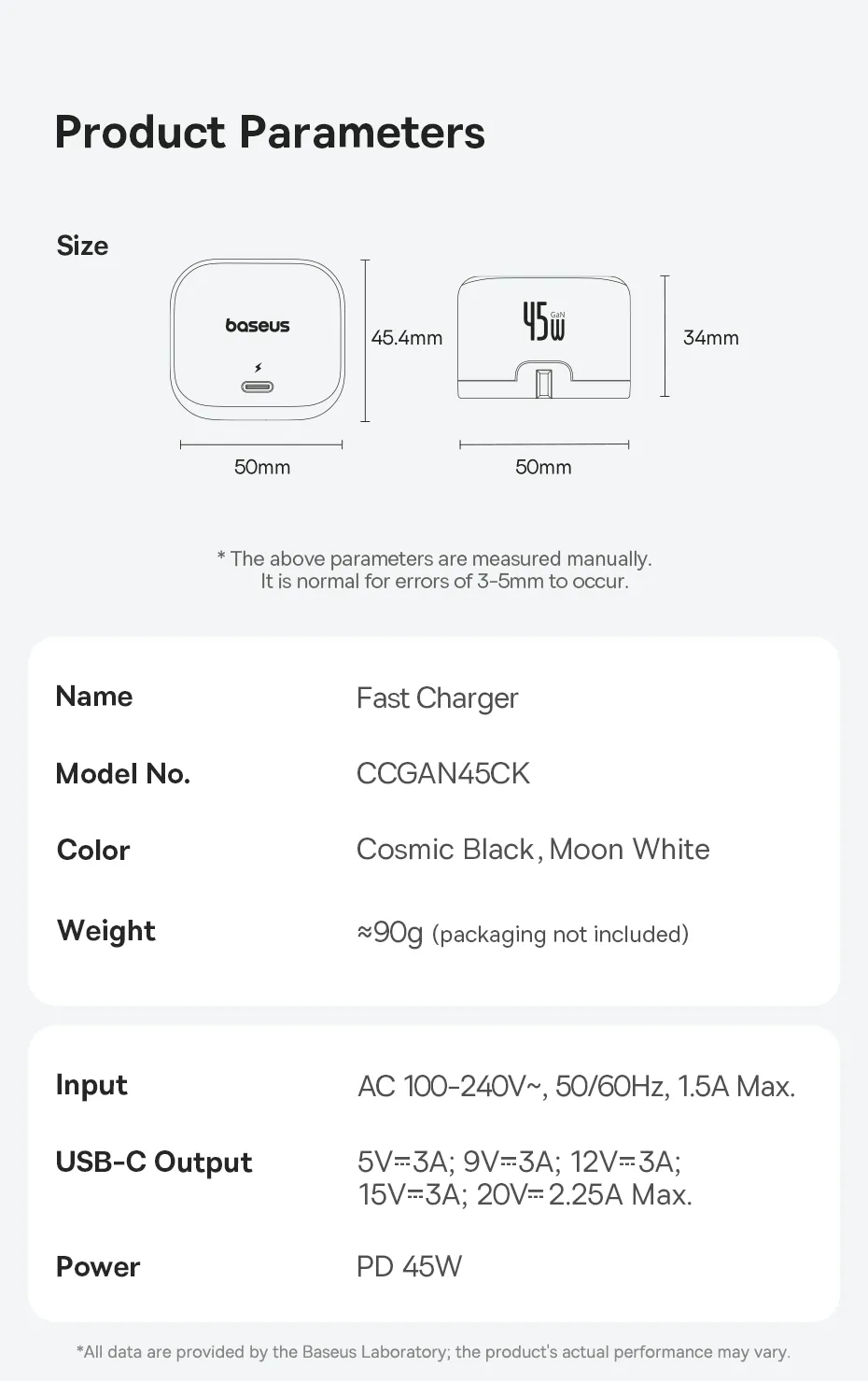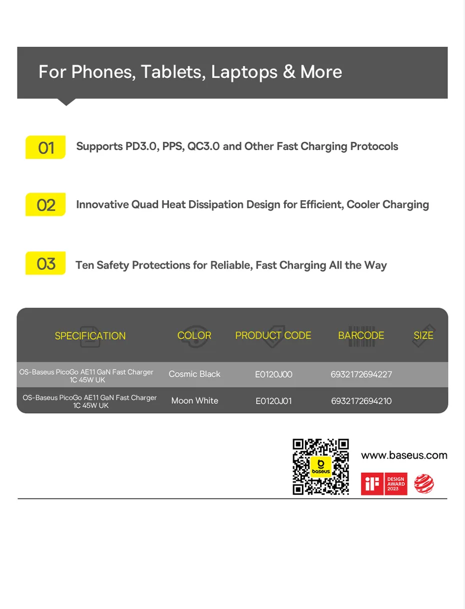 Baseus PicoGo AE11 GaN Fast Charger 1C 45W UK